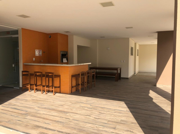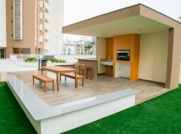 Lounge aberto com churrasqueira a carvão